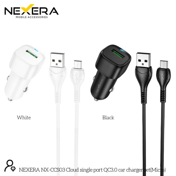 NEXERA BZ34 Cloud single port QC3.0 car charger set(Micro) change to X37 cable