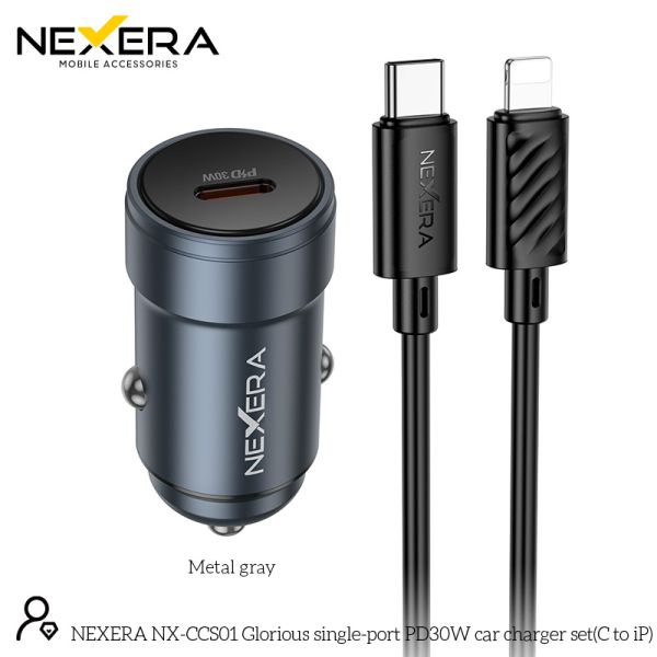 NEXERA Z57 Glorious single-port PD30W car charger set(C to iP)
