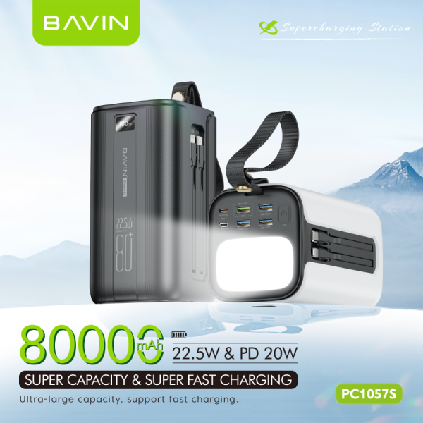 BAVIN Y-PC1057S 80000mAh / Y-PC1138S 100000mAh Heavy Duty Portable 22.5W Fast Charging Powerbank w/ LED Indicator & Flashlight