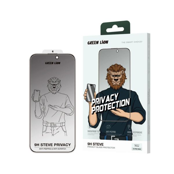 Green Lion 9H Steve Matte Privacy Glass iPhone 17 pro max/16 Pro/Pro Max - Black