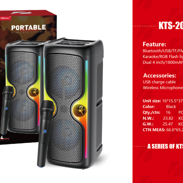 2*4 inch Portable Speaker VIP1 Model Unit Size: 16*15.5*37.1CM KTS-2033