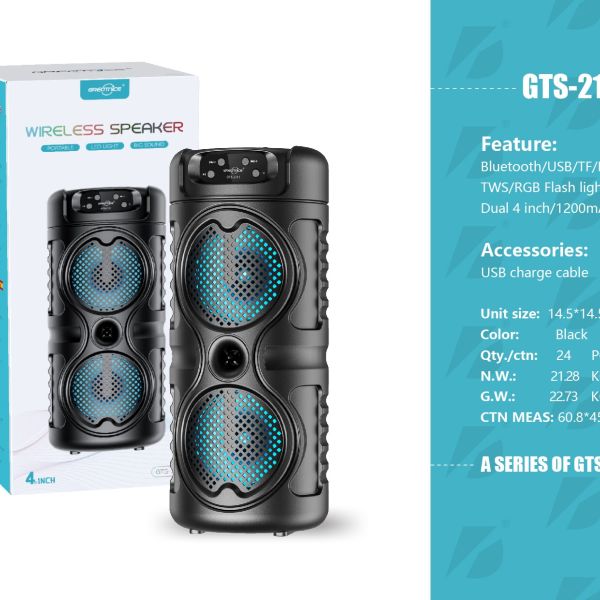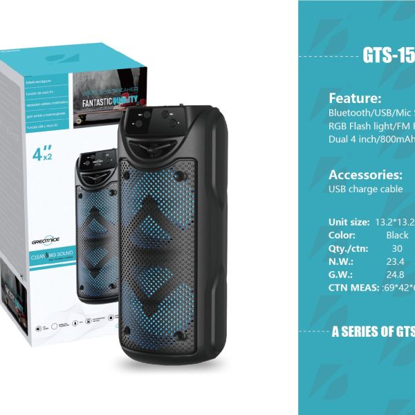 2*4 inch Portable Speaker VIP1 Model Unit Size: 14.5*14.5*32.6CM GTS-2151