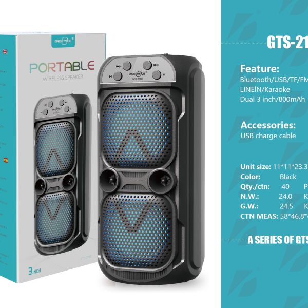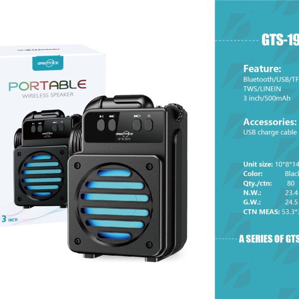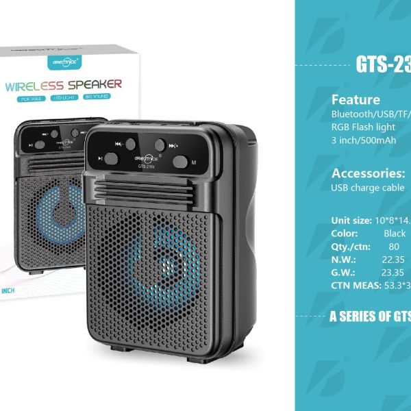 3 inch Portable Speaker Priority Model Unit Size: 15*8.5*15.5CM GTS-1492A