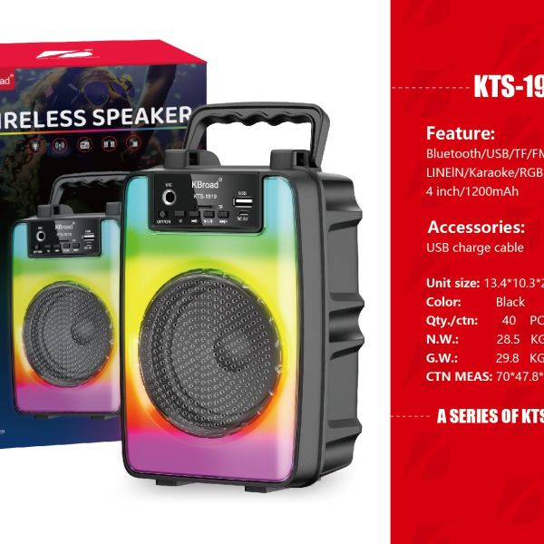 4 inch Portable Speaker VIP1 Model Unit Size: 13.4*10.3*20.4CM KTS-1919