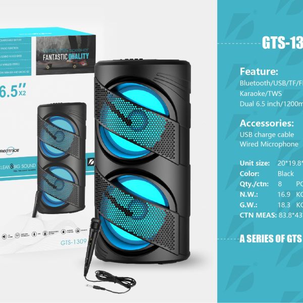 2*6.5 inch Portable Speaker VIP1 Model Unit Size: 20*19.8*41.5CM GTS-1309