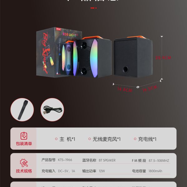 4 inch Portable Speaker VIP1 Model Unit Size: 14.8*16.5*20.9CM KTS-1966