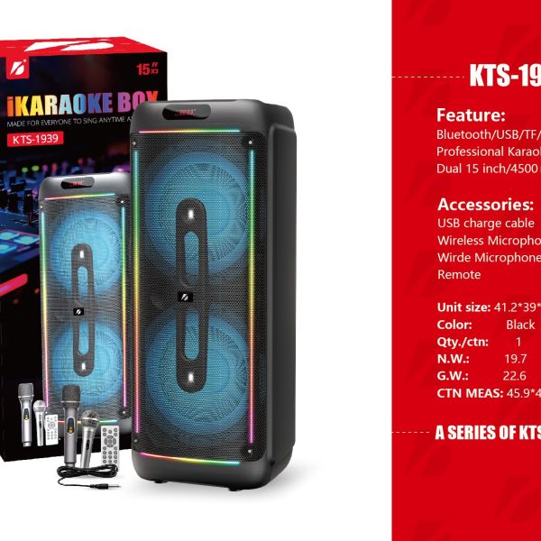 2*15 inch Karaoke Speaker VIP3 Model Unit Size: 41.2*39*100CM KTS-1939