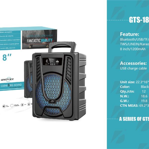 8 inch Portable Speaker VIP1 Model Unit Size: 22.3*16*30.4CM GTS-1830