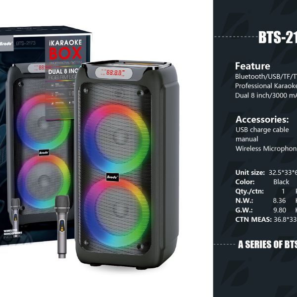 2*8 inch Karaoke Speaker VIP3 Model Unit Size: 32.5*33*69.6CM BTS-2173