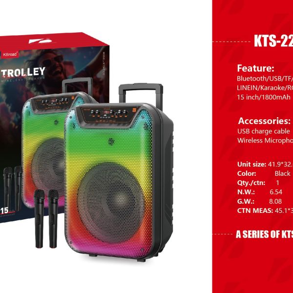 15 inch trolly Portable Speaker VIP1 Model Unit Size: 41.9*32.6*62CM KTS-2233