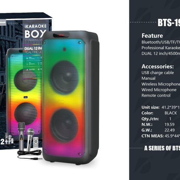 2*12 inch Karaoke Speaker VIP3 Model Unit Size: 41.2*39*100CM BTS-1938