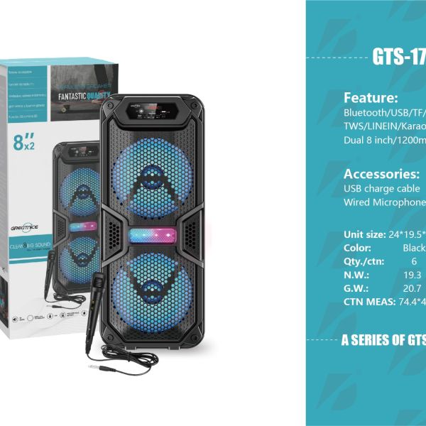 2*8 inch Portable Speaker VIP1 Model Unit Size: 24*19.5*57.8CM GTS-1701