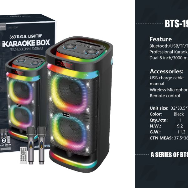 2*8 inch Karaoke Speaker VIP3 Model Unit Size: 32*33.5*71.4CM BTS-1990
