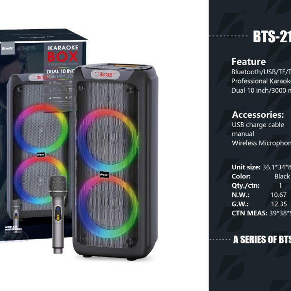 2*10 inch Karaoke Speaker VIP3 Model Unit Size: 36.1*34*84.5CM BTS-2175