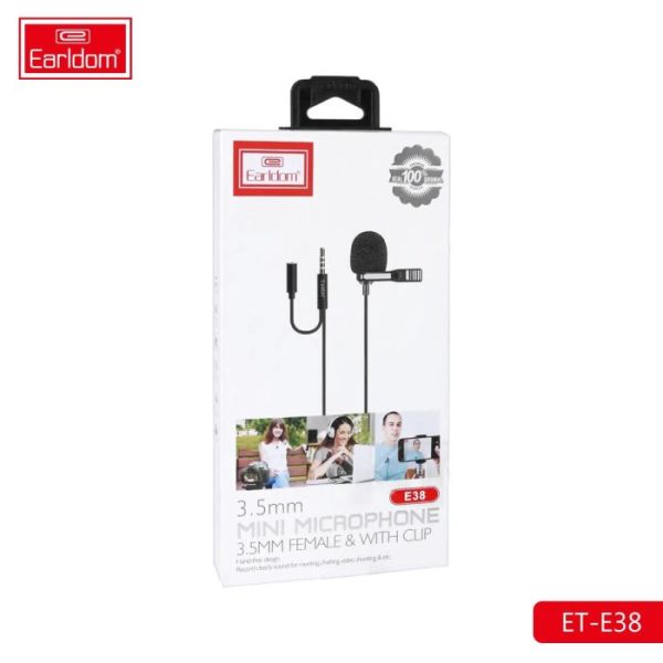 Earldom ET E38 3.5mm jack Microphone, Mini Microphone with Clip, Hand-free design Record sound for meeting chatting video shooting.